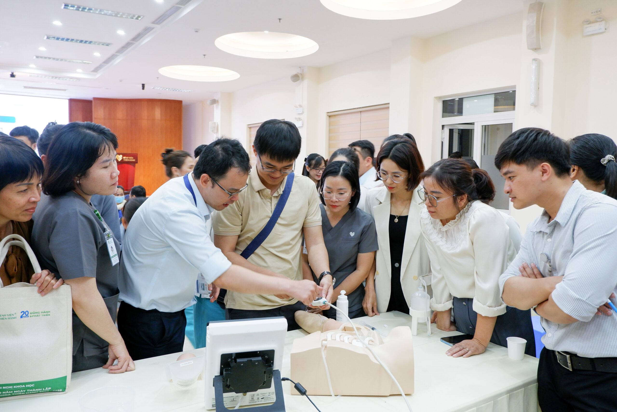 Đặc biệt, phần thực hành trên mô hình và thiết bị mô phỏng đã giúp các bác sĩ, điều dưỡng trực tiếp rèn luyện kỹ năng, làm quen với thao tác chuẩn và hiểu rõ các yếu tố kỹ thuật cần lưu ý trong quá trình thực hiện. Buổi hội thảo cũng là dịp để đội ngũ y tế Bệnh viện Thiện Hạnh trao đổi kinh nghiệm, góp phần tăng cường hợp tác chuyên môn trong lĩnh vực chăm sóc đường truyền trị liệu.