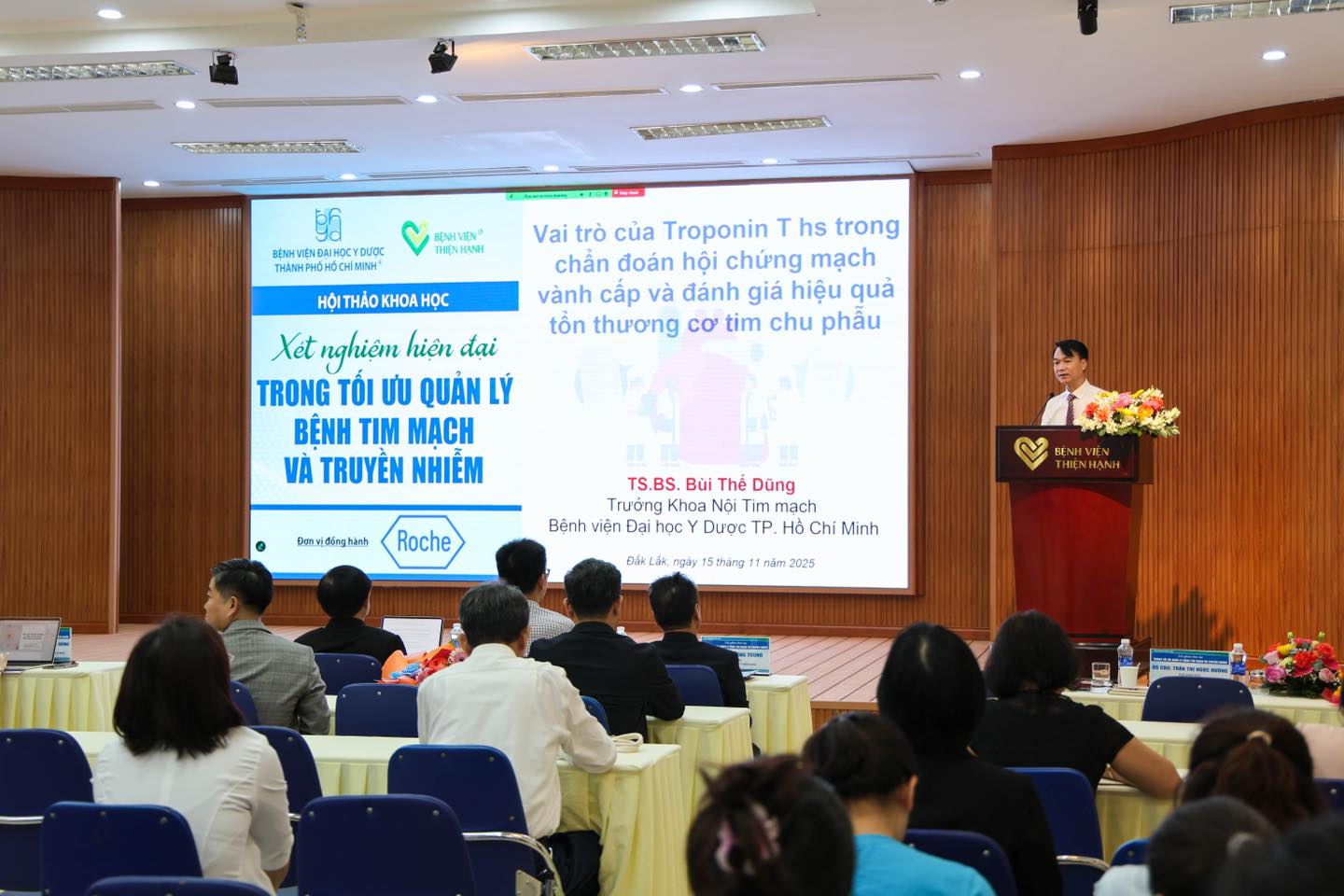 Ngày 15/11/2025, Bệnh viện Đại học Y Dược TP.HCM phối hợp cùng Bệnh viện đa khoa Thiện Hạnh tổ chức Hội thảo khoa học với chủ đề “Xét nghiệm hiện đại trong tối ưu quản lý bệnh tim mạch và truyền nhiễm”. Sự kiện nhằm cập nhật kiến thức chuyên môn, tăng cường năng lực chẩn đoán và thúc đẩy hợp tác nghiên cứu, đào tạo giữa hai đơn vị trong thời gian tới.